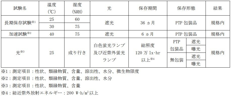 「錠剤・カプセル剤の無包装状態での安定性試験法について(答申)(日本病院薬剤師会)(平成11年8月20日付)」の評価方法に準じた安定性情報を以下に示す。